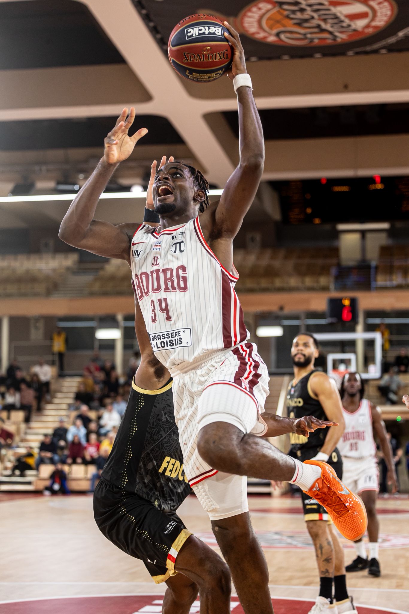 « À mon sens, il peut largement jouer au niveau supérieur », anticipait Frédéric Fauthoux dès le début du mois. En Principauté, le Cergyssois lui a totalement donné raison, en déployant une intensité physique inouïe, montant au-dessus des intérieurs monégasques à qui il rend pourtant bien plus de 10 centimètres. Tout en étalant ses progrès offensifs, avec un tir lointain enfin stabilisé, comme lorsqu’il planta le poignard dans le cœur de Monaco depuis le corner droit (89-91, score final).