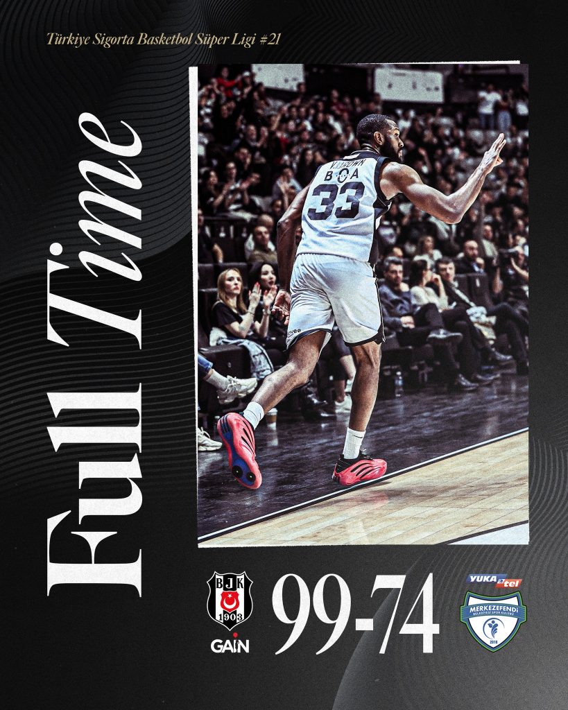 Besiktas a largement dominé Merkezefendi (99-74) hier soir pour la 21e journée de Super Lig, porté par une défense solide, une adresse collective et un secteur intérieur dominateur.
