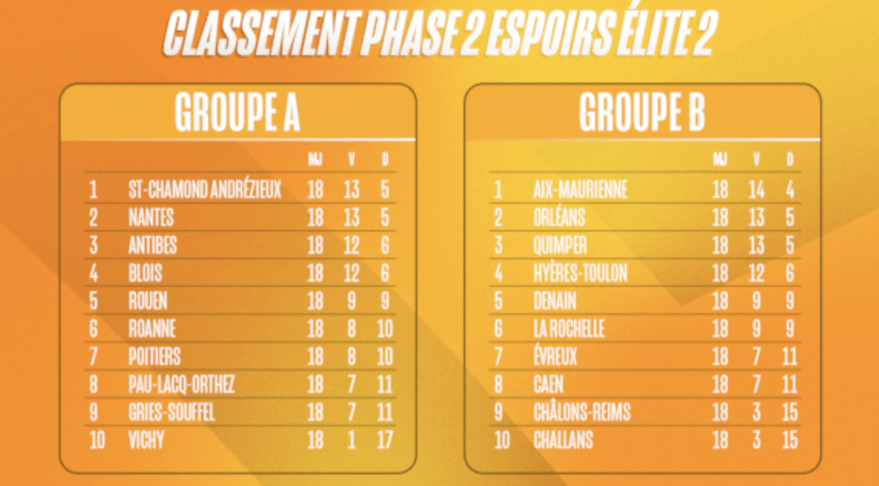 Le tableau des playoffs du championnat Espoirs ÉLITE 2 : qui succèdera à Roanne ?