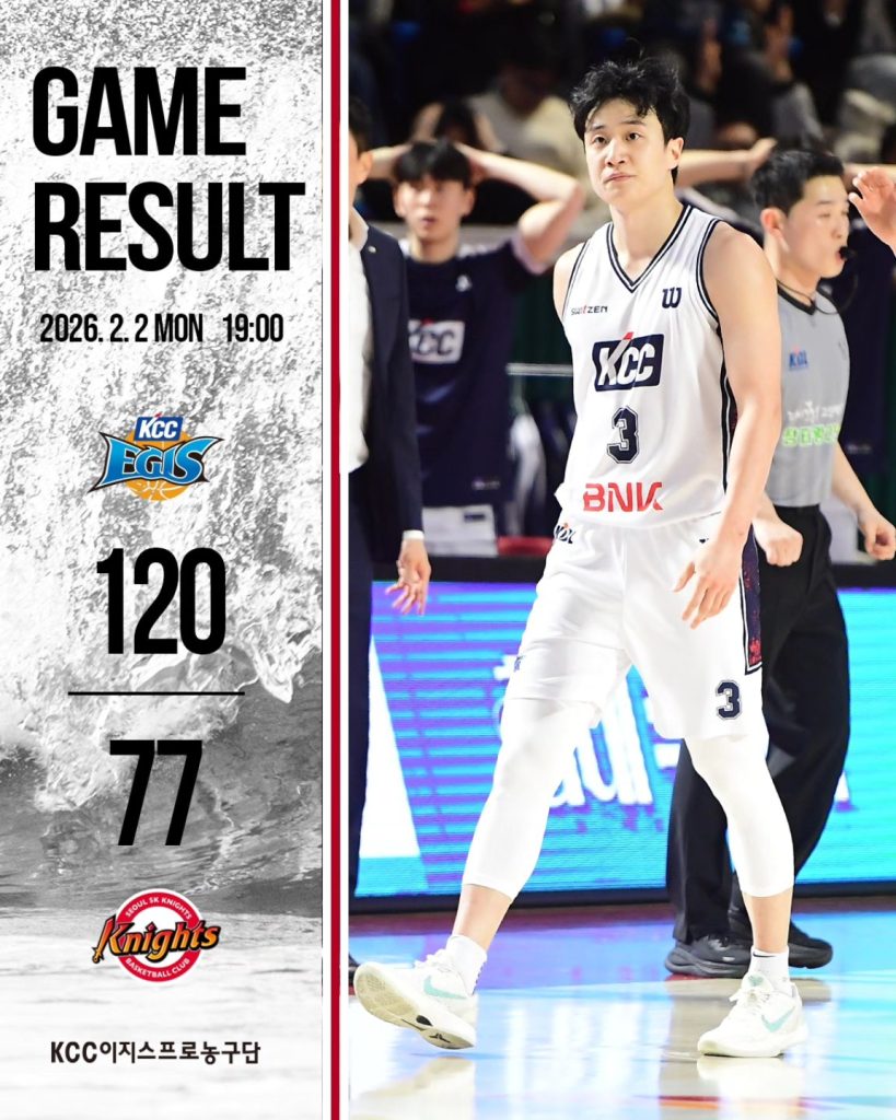 La salle des étudiants de Jamsil a été le théâtre d’un véritable massacre sportif ce lundi. Dans une rencontre à sens unique, les Busan KCC Egis ont littéralement pulvérisé les Seoul SK Knights sur le score fleuve de 120 à 77. Si la domination collective des Egis a marqué les esprits, c’est la performance historique d’un homme qui restera gravée dans les annales de la ligue coréenne : Heo Ung