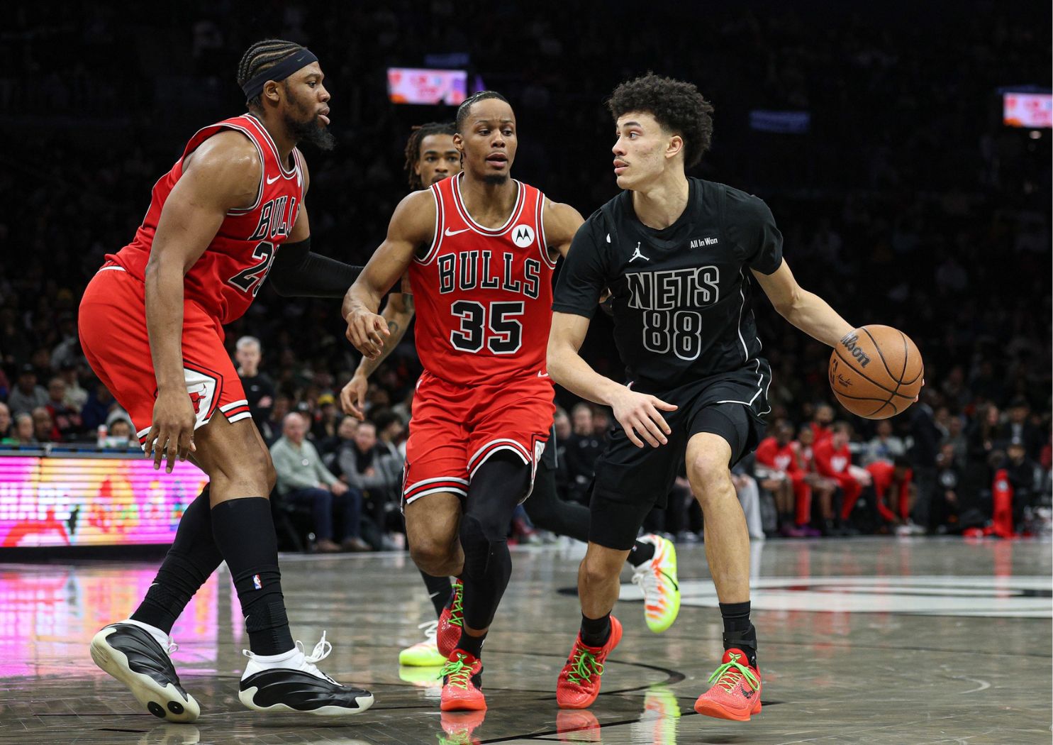 Après deux premières sorties intéressantes, Guerschon Yabusele (2,01 m, 30 ans) a connu une soirée plus compliquée avec Chicago contre les Brooklyn Nets d’un bon Nolan Traoré. Utilisé près du cercle, il termine avec 3 points, 2 rebonds, 1 passe décisive et 1 interception à 1/3 au tir. Le retour de Jalen Smith devrait lui permettre de retrouver un rôle plus adapté à ses qualités.