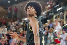 Auteur d’une formidable Coupe du Monde pour son âge (13,2 points à 46%, 4,6 rebonds et 1,4 passe décisive), le phénomène de Bandar Abass reste désespérément invisible avec les pros de l’AS Monaco : cinq apparitions sur la feuille de match cette saison, pour une seule entrée de jeu, expéditive (2 minutes à Chalon le 24 septembre 2023) au cours d’un match pourtant à sens unique (68-104). L’an dernier, il n’avait eu le droit qu’à la sortie pré-Final Four à Blois (12 points à 4/7 et 4 rebonds en 37 minutes). La faute, évidemment, au roster luxuriant de la Roca Team, avec déjà sept NJFL, autrement plus référencés que lui, pour six spots disponibles.