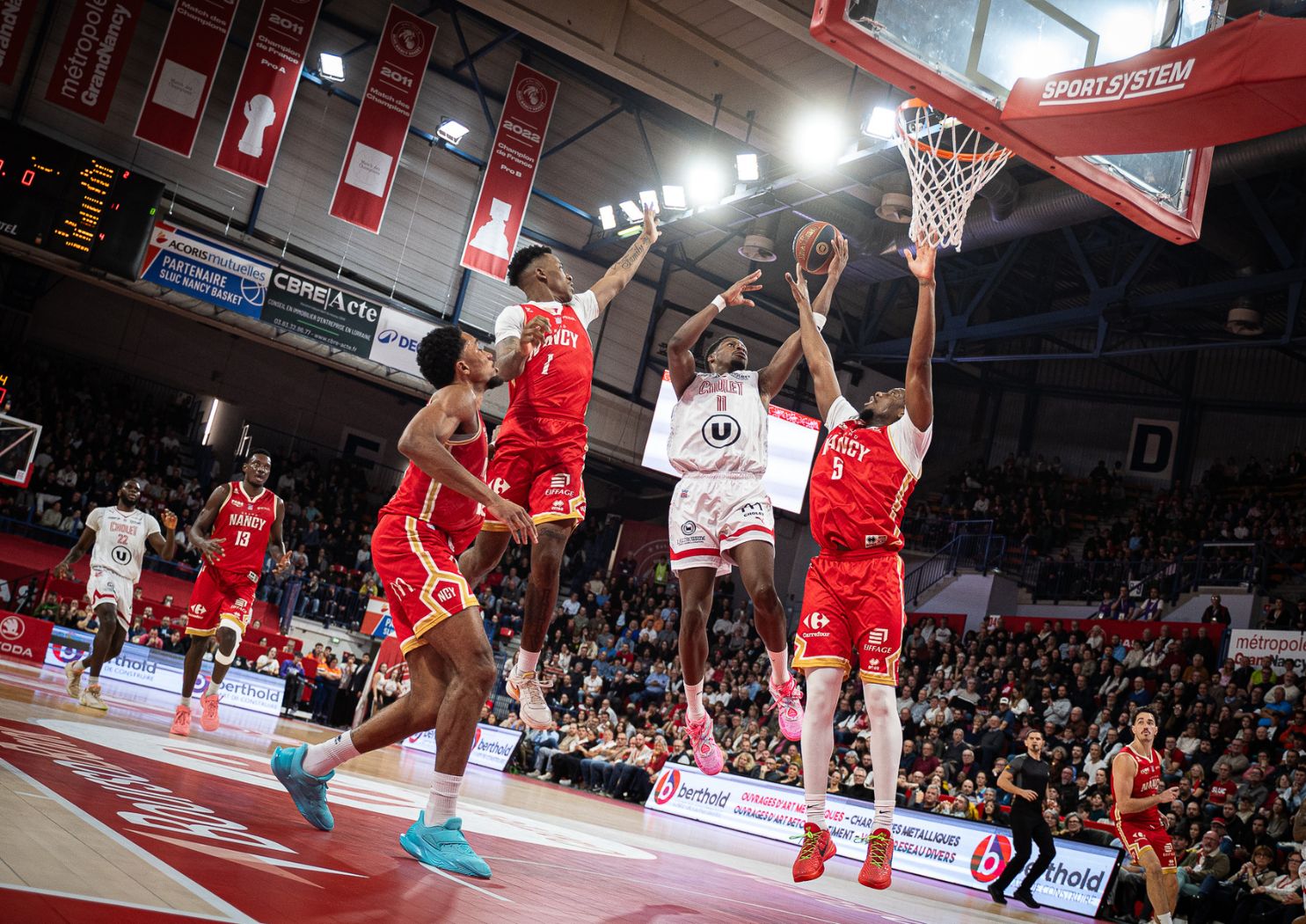 C’était un match qui compte pour ces deux clubs historiques du basket français. Ce vendredi 7 novembre, le SLUC Nancy recevait Cholet Basket à domicile dans le cadre de la 7ᵉ journée de Betclic ÉLITE. Nancy, avec un bilan modeste de 2 victoires en 6 matchs et restait sur deux revers consécutifs, se voyait offrir l’opportunité de relancer sa saison, tandis que Cholet, plus en forme (4 victoires en 6 matchs de championnat), arrivait avec l’ambition de confirmer son statut. Mais le Palais des Sports Jean-Weille et sa forte ambiance portée par les fans du SLUC n’est jamais une place facile à prendre. Les Choletais en ont fait l’expérience, contrairement à leurs deux derniers déplacements en Lorraine.
