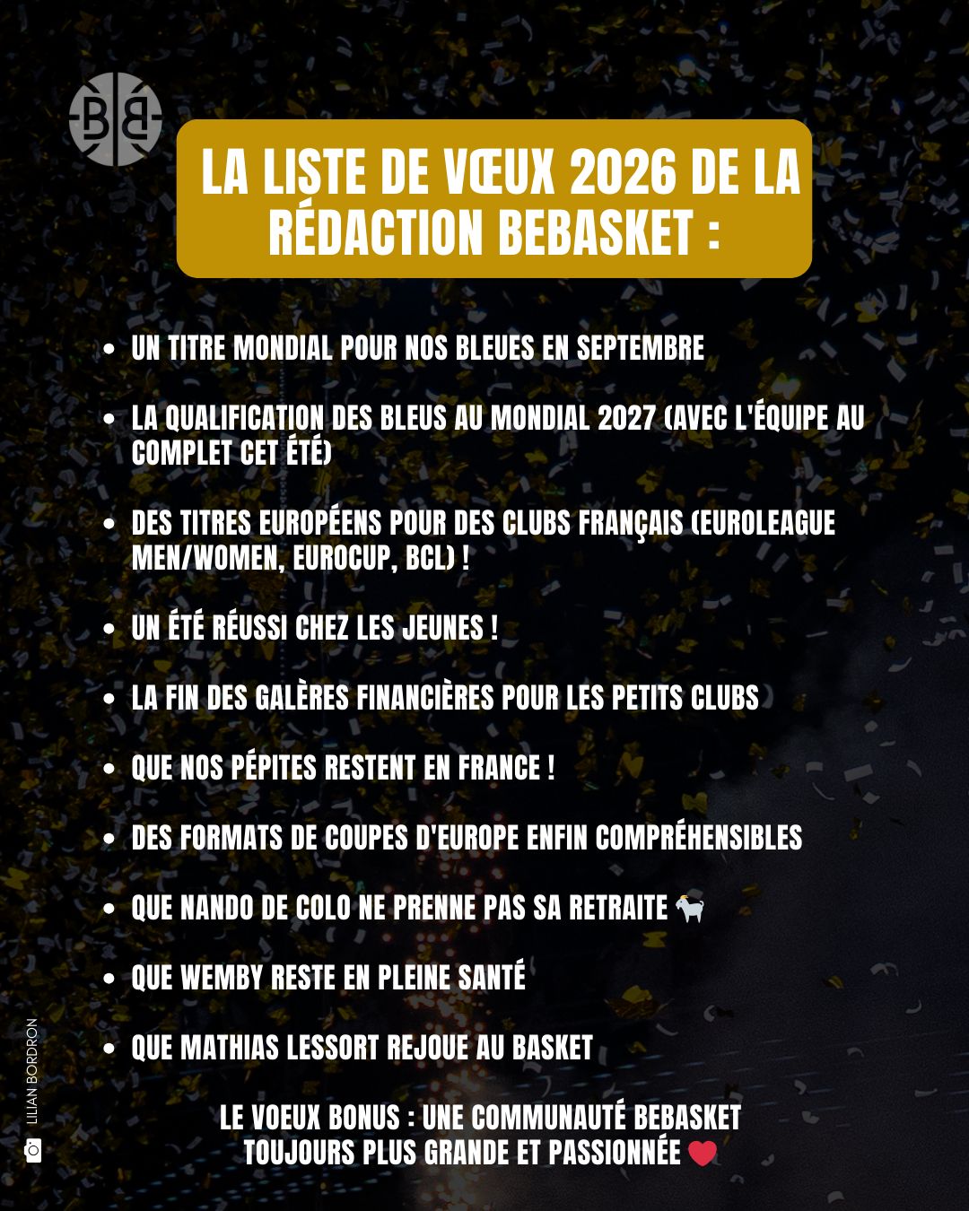 En ce 1er janvier 2026, il est temps pour nous, à BeBasket, de vous souhaiter une très belle année. Et, comme il est de coutume, d’exposer notre liste de vœux pour 2026.