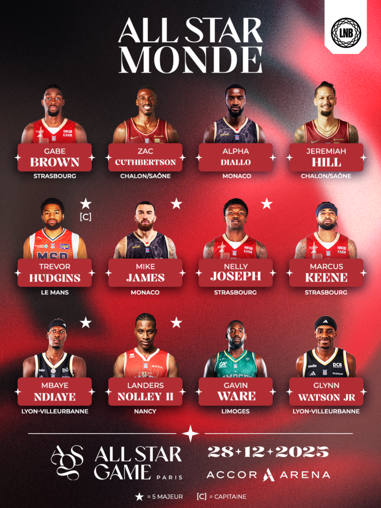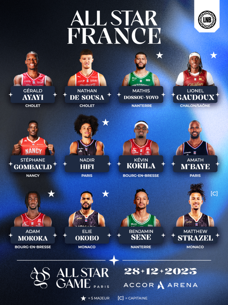 Pour cette 39e édition du All-Star Game LNB, la Team France, composée notamment de Mathis Dossou-Yovo, Nadir Hifi ou encore Élie Okobo (si apte), défiera une Team Monde emmenée par Mike James. Un duel offensif et spectaculaire est attendu, dans la lignée des éditions précédentes.