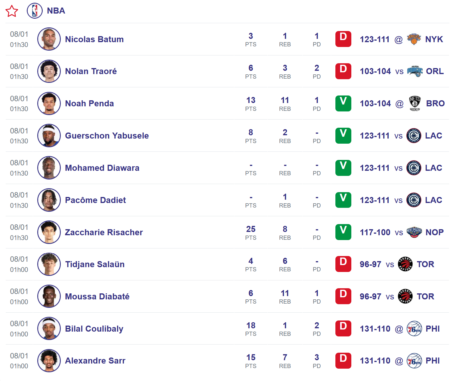 À New York, Guerschon Yabusele (2,01 m, 30 ans) a de nouveau été efficace malgré un temps de jeu réduit, inscrivant 8 points en 13 minutes face aux Clippers. Dans le camp californien, Nicolas Batum (2,03 m, 37 ans) a connu une soirée d’adresse compliquée, terminant avec 3 points.