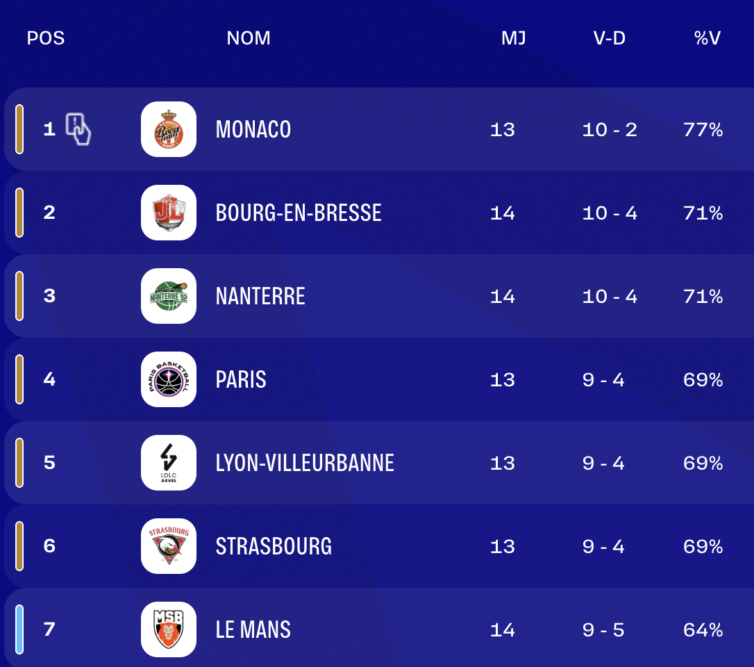 Il y aura plusieurs confrontations directes déterminantes : Bourg-en-Bresse – Strasbourg samedi puis ASVEL – Paris dimanche. Puis des matchs en retard qui pèseront lourd en début de semaine prochaine, notamment un Paris – Strasbourg.