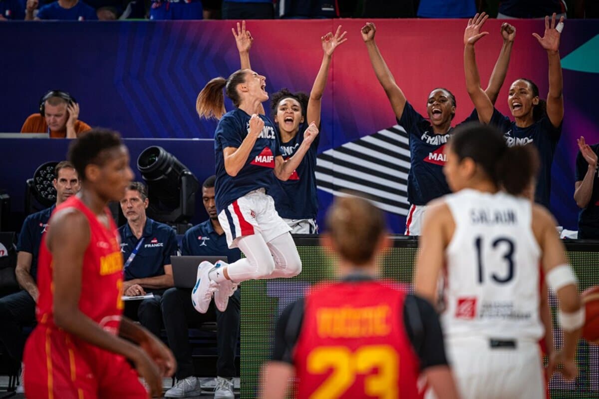 « Les gens étaient plus inquiets que nous », souffle, presque amusée, Valériane Vukosavljevic. Et c’est certainement vrai puisque les Bleues pouvaient se targuer d’avoir réussi à assurer l’essentiel jusque-là, gagner, mais il ne faut pas occulter que tout avait été fait dans la souffrance (58-50 contre l’Allemagne, 63-57 face à la Grande-Bretagne et 73-68 contre la Slovénie). On pourra même dire que ce premier tour n’était franchement pas joli. Alors, pour ce quart de finale, il fallait une nouvelle fois l’emporter, évidemment, mais il fallait aussi faire un peu plus : libérer les frustrations et se retrouver. Mission accomplie (89-46, score final). « Depuis le début, gagner était tout ce qui importait mais c’est vrai que ça fait toujours du bien pour les têtes d’y mettre aussi la manière comme on a su le faire », reconnaît Romane Bernies.