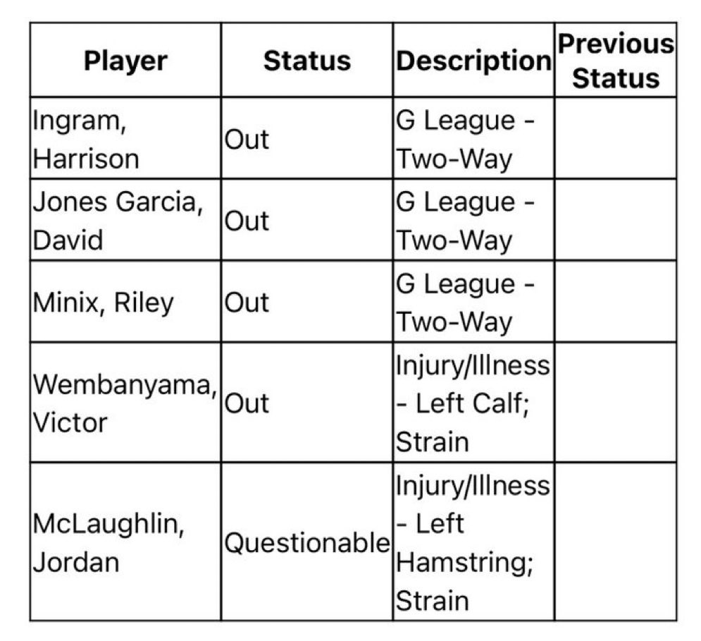 Mais il n’en sera finalement rien, et la superstar française des Spurs restera en civil dans l’antre californienne. Fidèle à sa tradition de précaution maximale, la franchise de San Antonio l’a officiellement listé comme forfait pour la rencontre, malgré son caractère couperet.