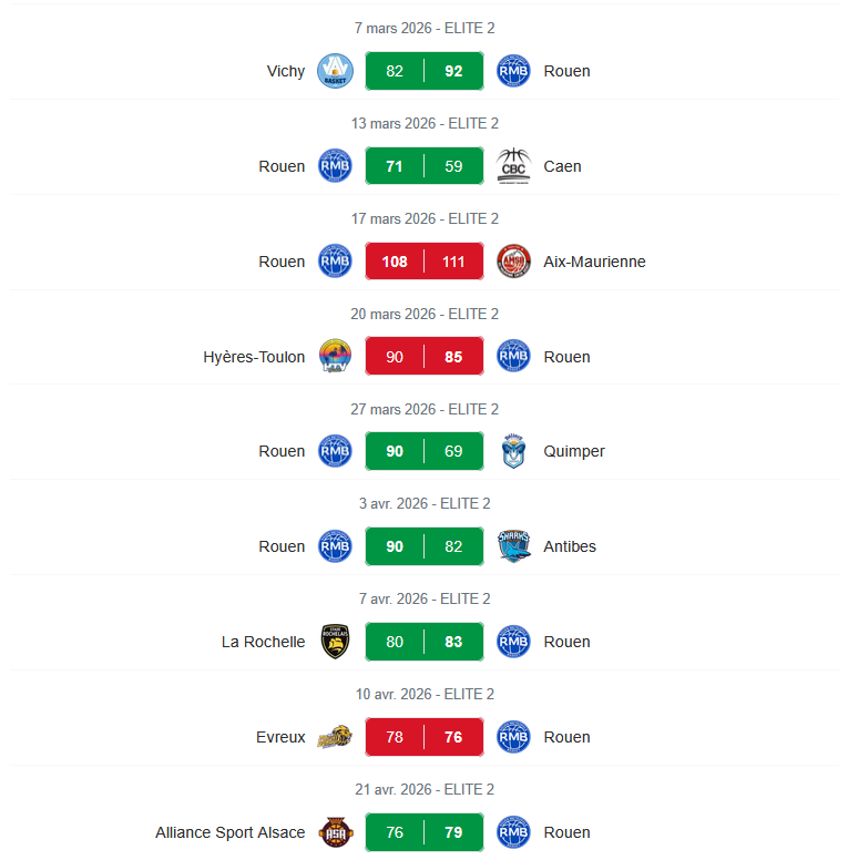 Quand Jean-Denys Choulet a pris les commandes du RMB début mars, la situation était critique. Seizième sur vingt avec une mauvaise dynamique de 3 défaites de suite, Rouen regardait dangereusement vers le bas. En neuf rencontres sur le banc normand, l’ancien coach de Roanne ou encore de Chalon a redressé la barre et signé six victoires pour seulement trois défaites. Surtout, ses revers ont tous été concédés de très peu, face à Aix-Maurienne, Hyères-Toulon et Évreux avec un écart de moins de 5 points.