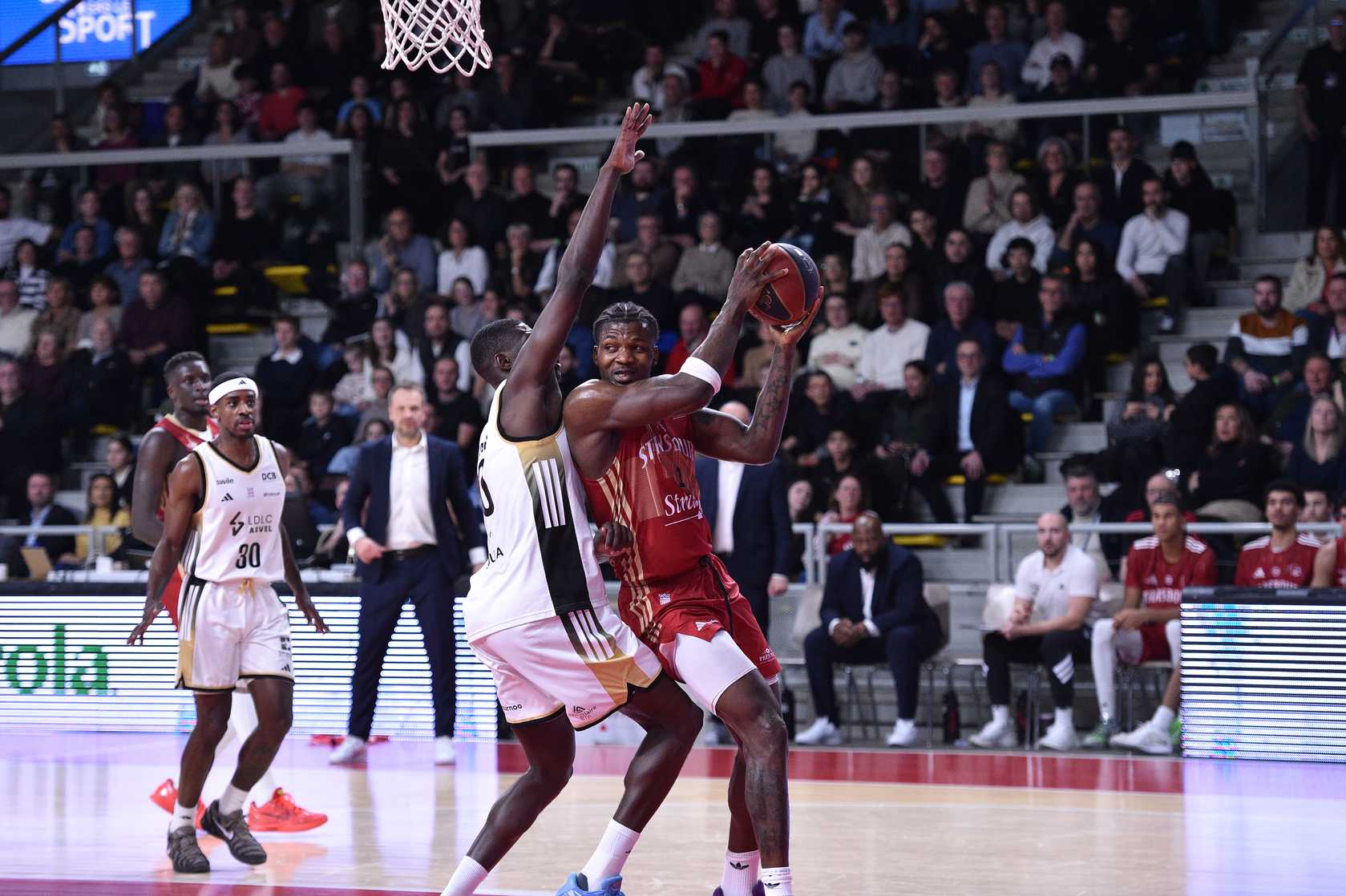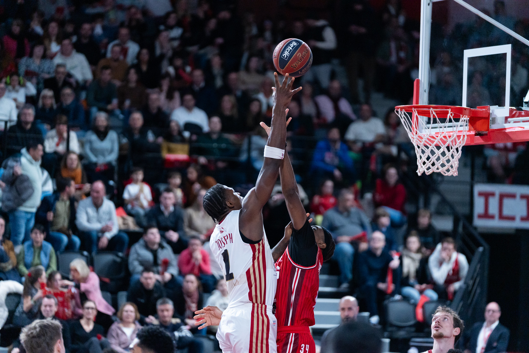 Nelly Jr Joseph, déjà de beaux fondamentaux pour un rookie, n°1 aux rebonds et n°2 à l’évaluation en Betclic ÉLITE (photo : Cécile Thomas)