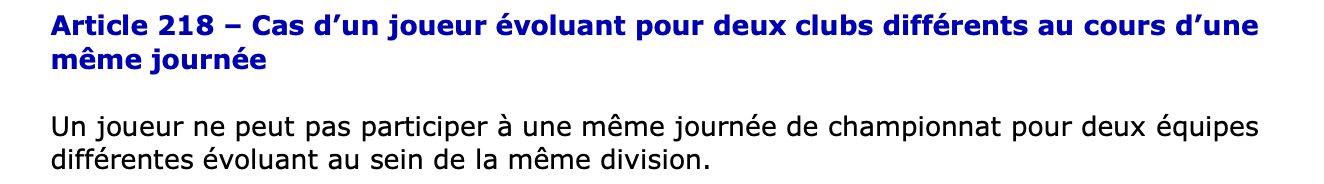 Mais justement, sa présence sur le terrain interpelle, puisqu’il s’agissait d’un match en retard de la 3e journée, qu’il avait déjà disputé avec l’ADA (contre Vichy). Or, le règlement de la LNB est clair. L’article 218 stipule « qu’un joueur ne peut pas participer à une même journée de championnat pour deux équipes différentes évoluant au sein de la même division. »