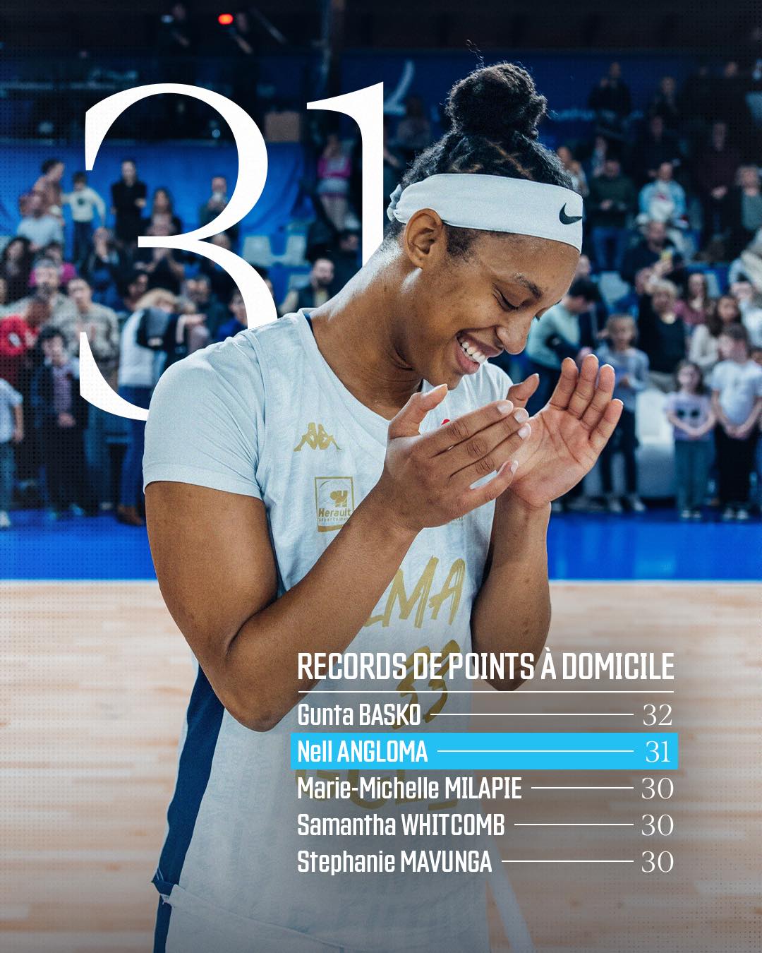Nell Angloma est d’ailleurs passée tout près d’entrer dans la grande histoire du BLMA. Un point de plus l’aurait permis de se hisser à la hauteur de Gunta Basko, l’Héraultaise ayant signé le record offensif pour un match à domicile de Lattes-Montpellier. Il faut remonter jusqu’au 5 janvier 2008 pour trouver trace des 32 points de la Lettone face à Reims. À l’époque, l’une de ses coéquipières s’appelait… Aurélie Bonnan, la coach victime du festival d’Angloma dimanche après-midi !